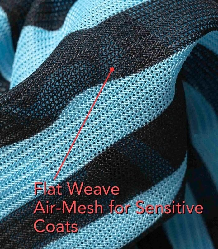 At 280 GSM, the Barcoo might sound heavy on paper - but its flat-weave mesh allows exceptional airflow while sitting softly against the coat. The smooth structure keeps the fabric lifted just off the skin, helping heat escape naturally while blocking insects and UV rays. It’s cool to the touch, gentle on short coats, and perfect for year-round rugging in warmer regions.