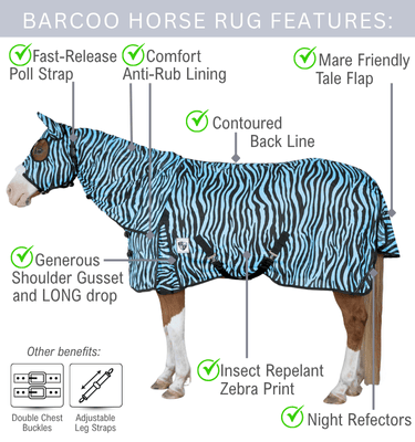 The new-season Delzani ‘Barcoo’ Air-Mesh Neck Combo delivers more than protection - it’s a bold statement in blue-zebra style, designed to turn heads while keeping insects confused and horses cool. Built for riders who expect function and flair in equal measure.