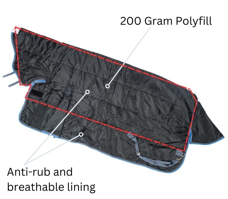 - Anti-Rub Linings - shoulder, mane, and tail flap areas protected