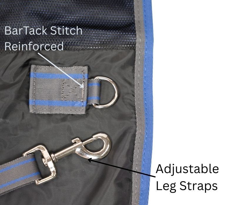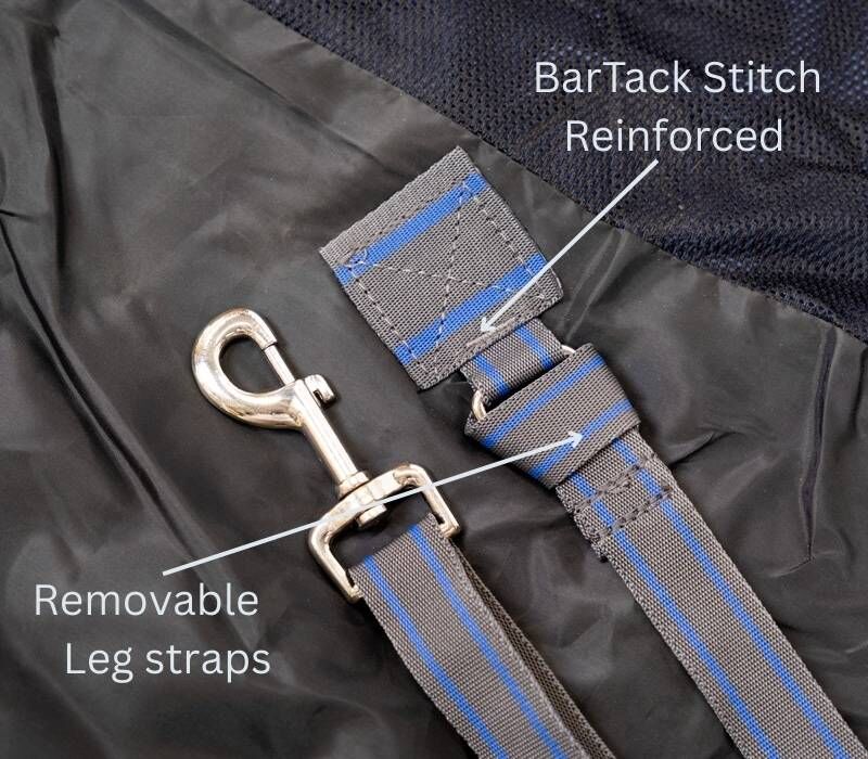 - Crossover Belly Surcingles – keeps the rug stable in the paddock