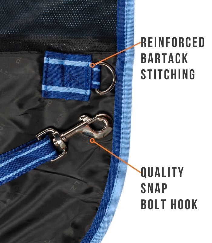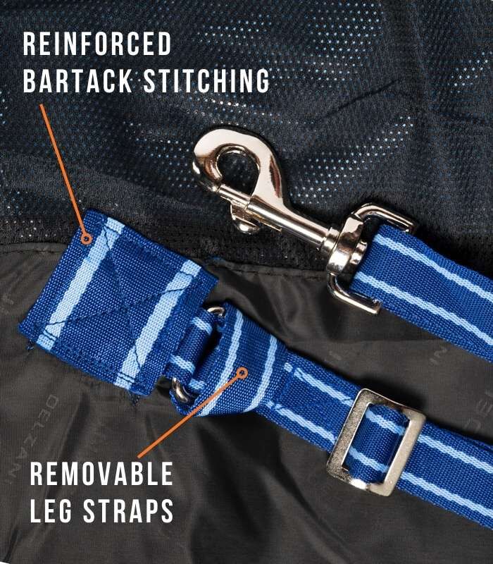 - Crossover Belly Surcingles – keeps the rug stable in the paddock