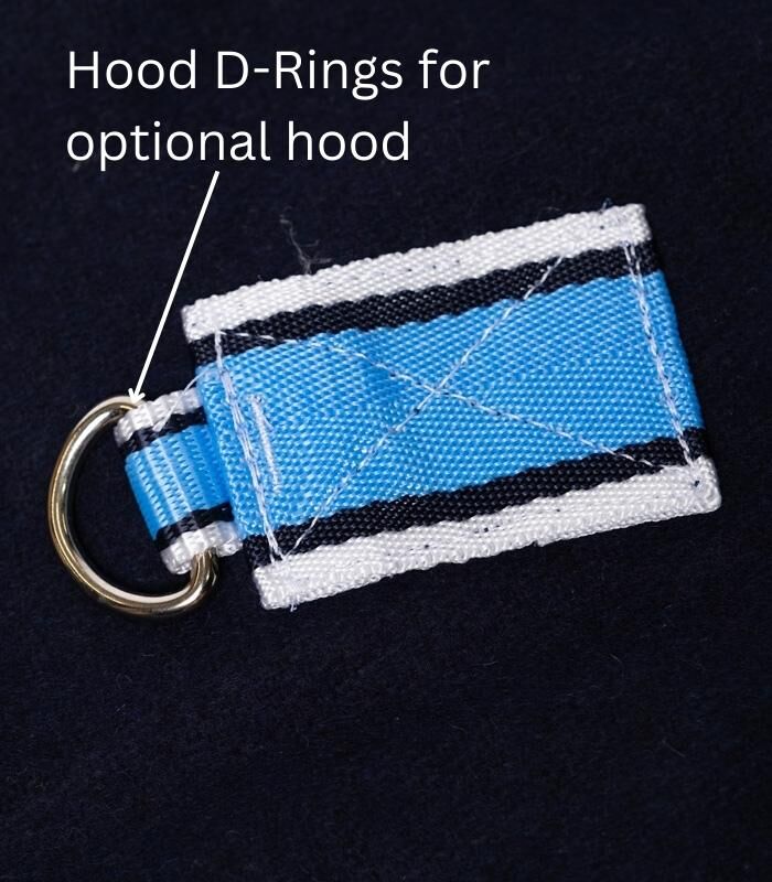 Crafted from the same plush 550gsm Kersey wool, the hood includes a fleece-padded nose, internal anti-rub mane lining, and an adjustable throat strap. Enclosed ears offer full coverage and can be safely removed if preferred. Designed to attach seamlessly to the rug or wear separately under turnouts.