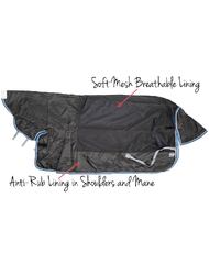 The underside of the Wyndham rug has anti-rub linings used in the shoulders, main and tail flap. Across the main body area, we use a soft and strong Sports mesh, which allows the horse's coat to breathe.