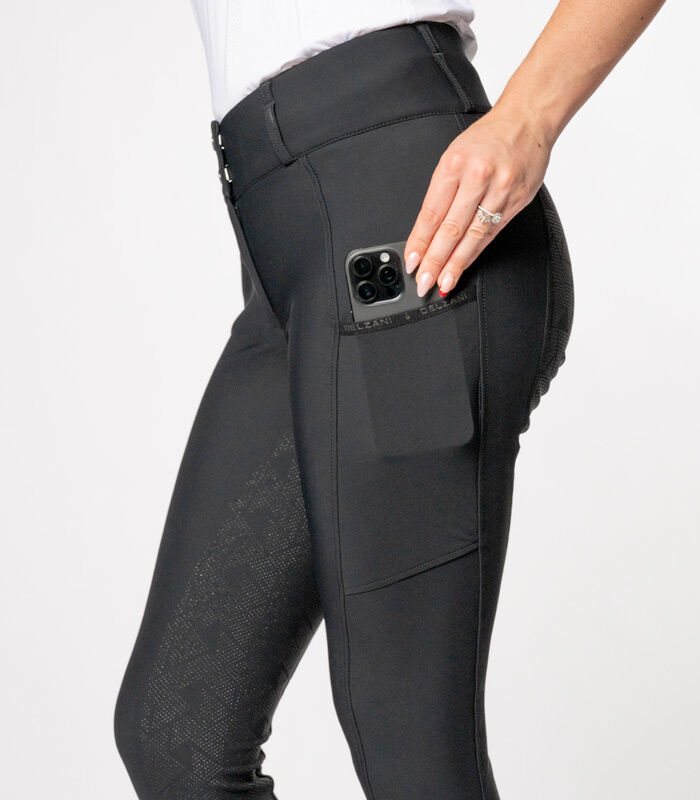 • Wide dressage-style waistband for comfort and stability